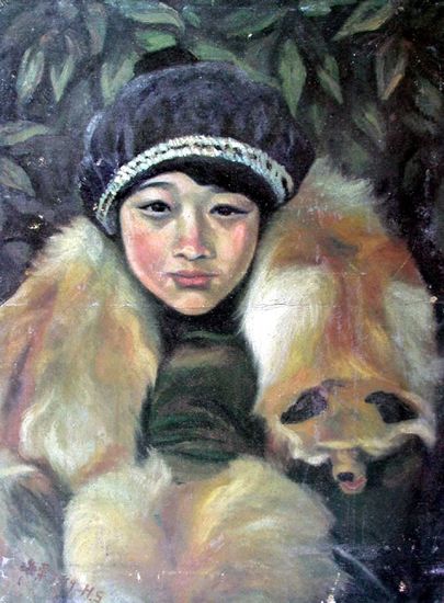 刘海粟《披狐皮的女孩》
